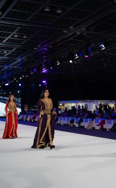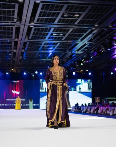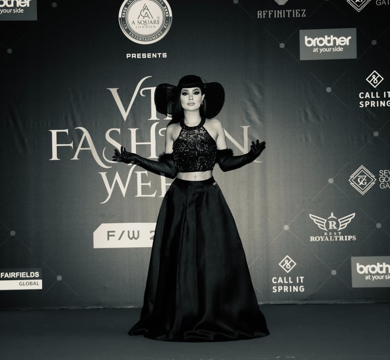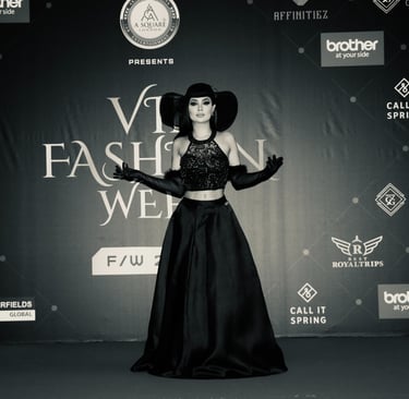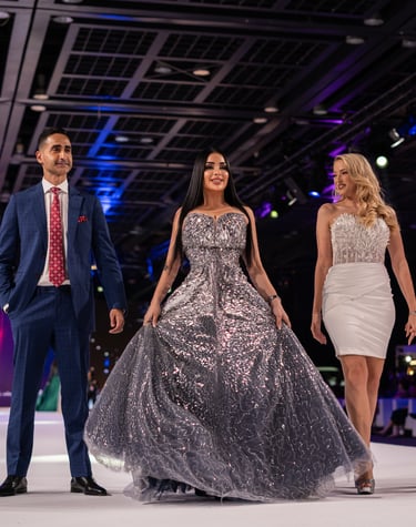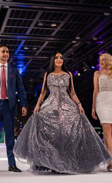Professional runway appearances showcasing elegance, confidence, and couture presentation on prominent fashion stages. Strong stage presence and polished movement highlight both garment and persona with sophistication.