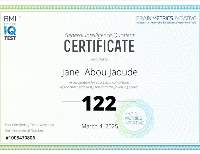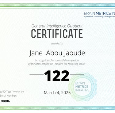 General Intelligence Quotient BMI Certified IQ Test & Beautician Certifications
