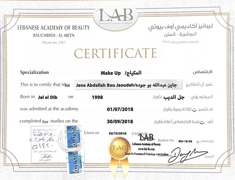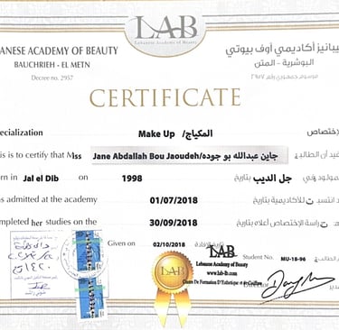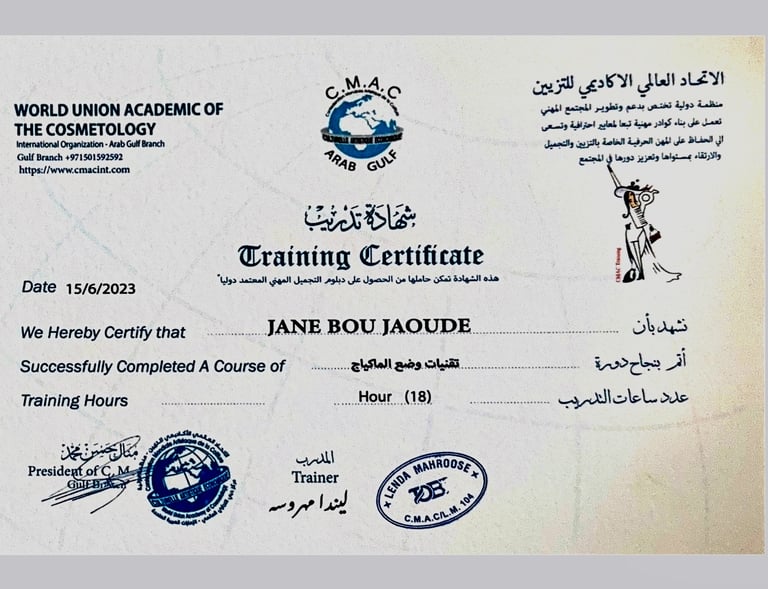 Accredited beauty qualifications backed by recognized training institutions, showcasing high-level competency in makeup, aesthetics, and specialized beauty treatments, verified through rigorous education and practice.