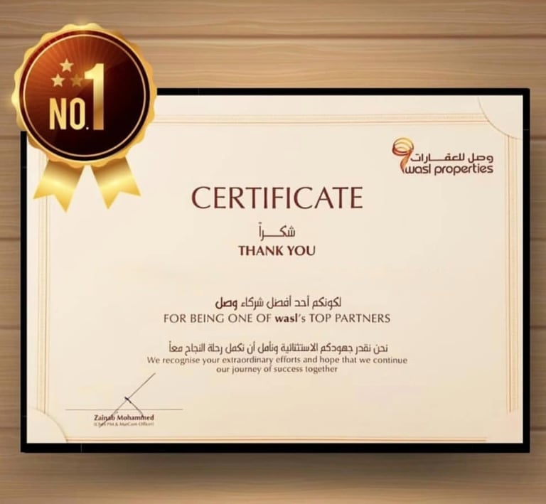 Trusted and certified by top real estate developers and elite broker academies, reflecting distinguished performance, refined client engagement, and a strong reputation within Dubai’s luxury property sector